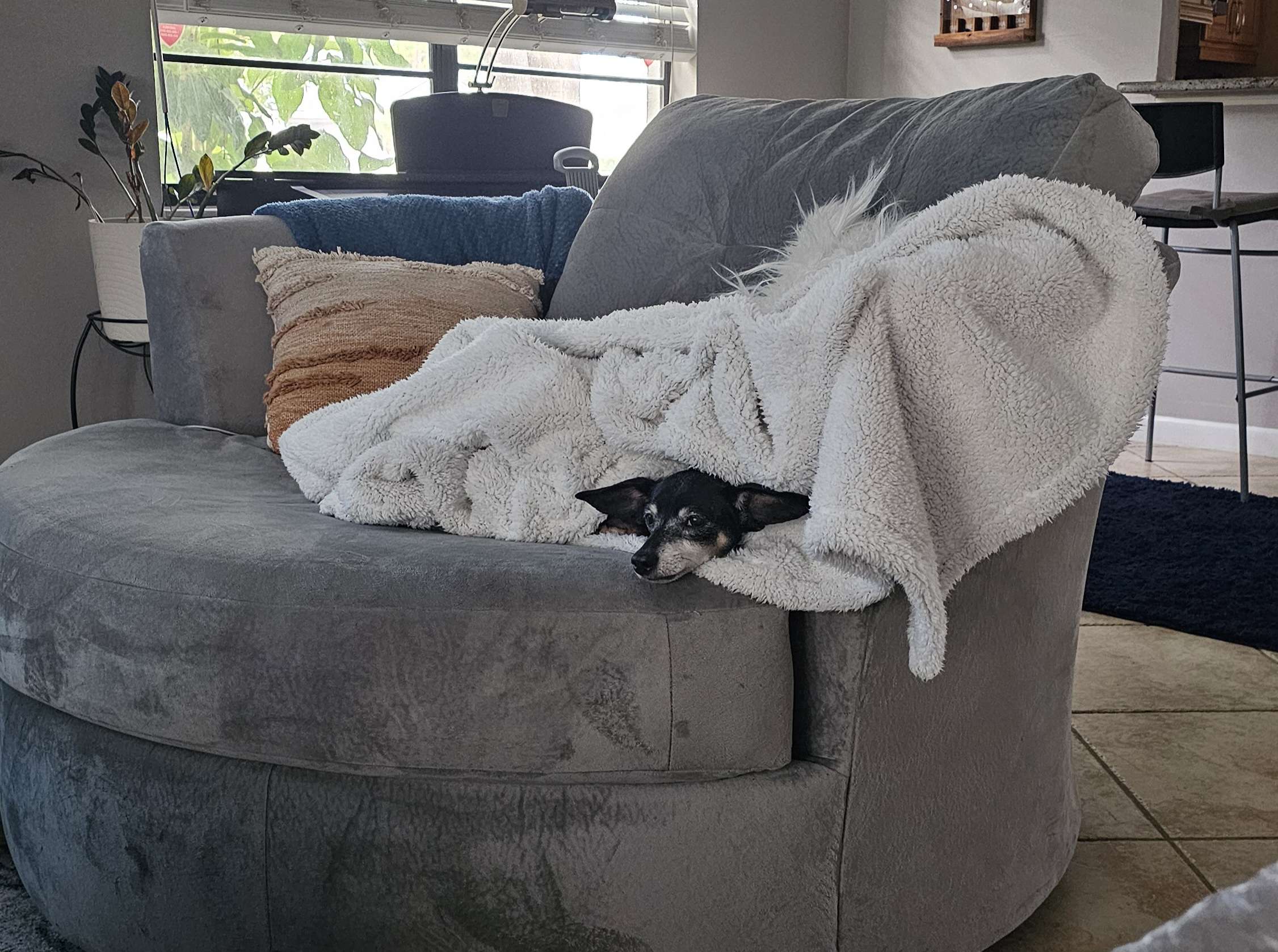 This blanket is great if you have a dog with a weak bladder. It washes easily and is waterproof/pee proof. it's just the right size to throw on the bed or the couch.